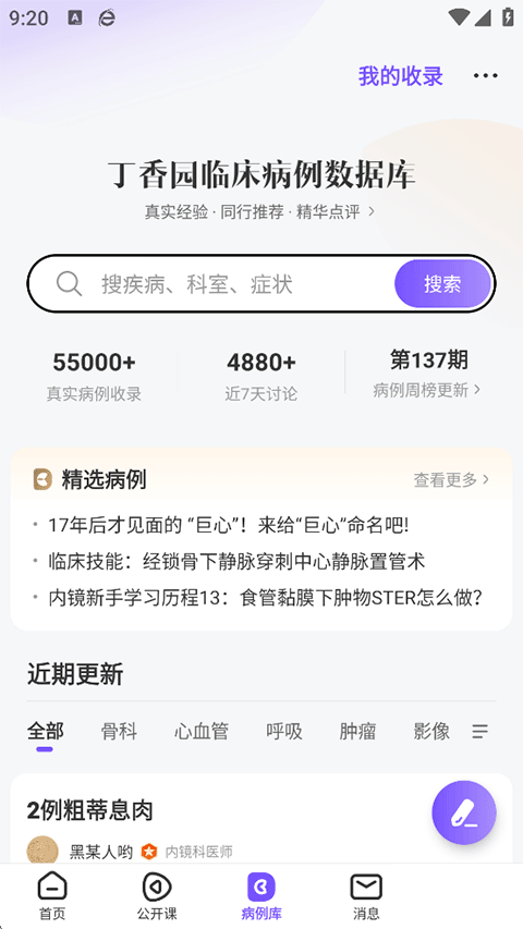 3、還可以在病例庫搜索在平常工作中遇到的疑難雜癥,同時也能擴展知識面;
