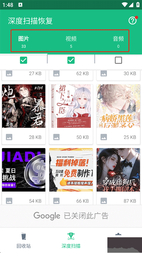 3、除了可以恢復(fù)手動(dòng)刪除的文件外,一些被系統(tǒng)刪除掉的緩存圖片、音頻及視頻也能被掃描出來。