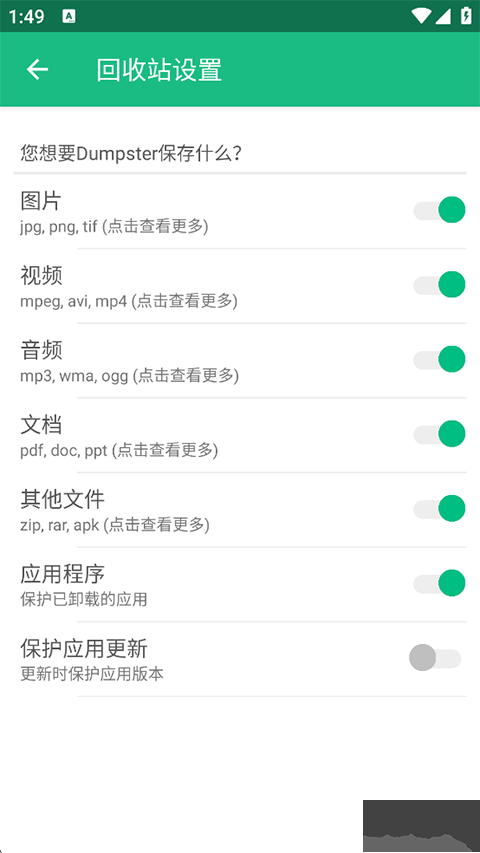 Dumpster回收站app是一款專業(yè)的文件恢復(fù)軟件,界面設(shè)計(jì)簡(jiǎn)潔,沒有廣告,不需要root,工作方式和PC電腦上的回收站類似,功能十分強(qiáng)大。不小心刪除了重要圖片等文件,軟件可以進(jìn)行文件恢復(fù),支持多種恢復(fù)算法,操作簡(jiǎn)單易用,恢復(fù)成功率也很高。還提供可靠的設(shè)備備份功能,可以把刪除的圖片、文件和視頻備份到云端,不會(huì)占用設(shè)備的任何存儲(chǔ)空間。非常的實(shí)用,需要的朋友快來下載試試吧!