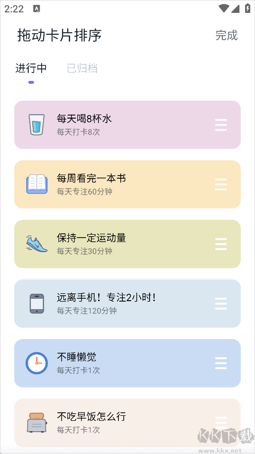 1、習(xí)慣計劃:可創(chuàng)建多個打卡清單,靈活規(guī)劃學(xué)習(xí)與工作任務(wù);