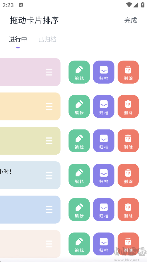 2、向左滑動該任務(wù)條目,點擊出現(xiàn)的【刪除】按鈕即可移除。