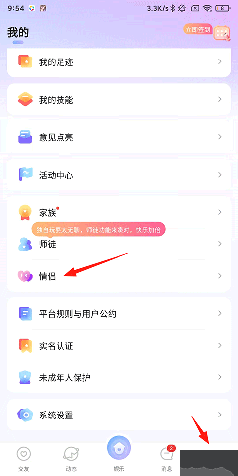 2、再點(diǎn)擊右上角的情侶。