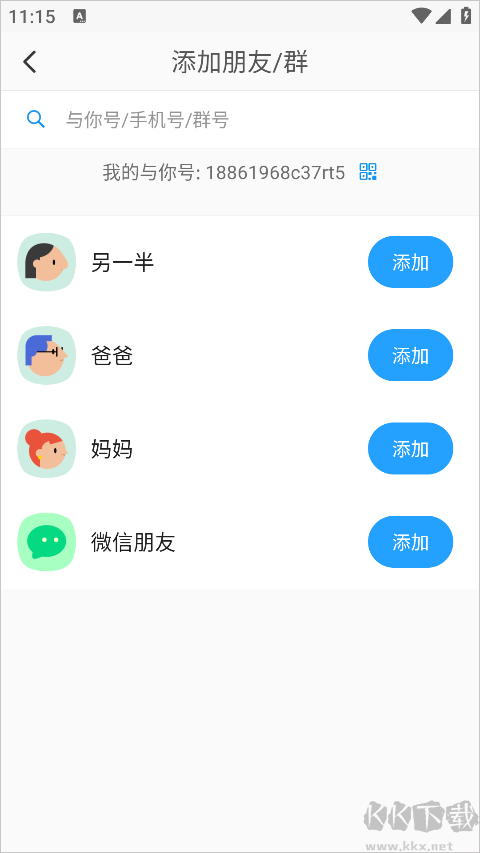 3、輸入對方的“與你號”/“手機號”即可加好友。