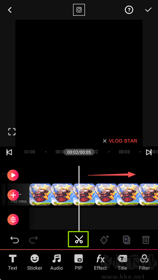 3、左右滑動素材并點(diǎn)選剪切符號,即可去除冗余片段。