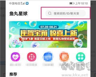 1、打開(kāi)魚丸星球,如下圖,看到搜索昵稱/ID/聊天室。