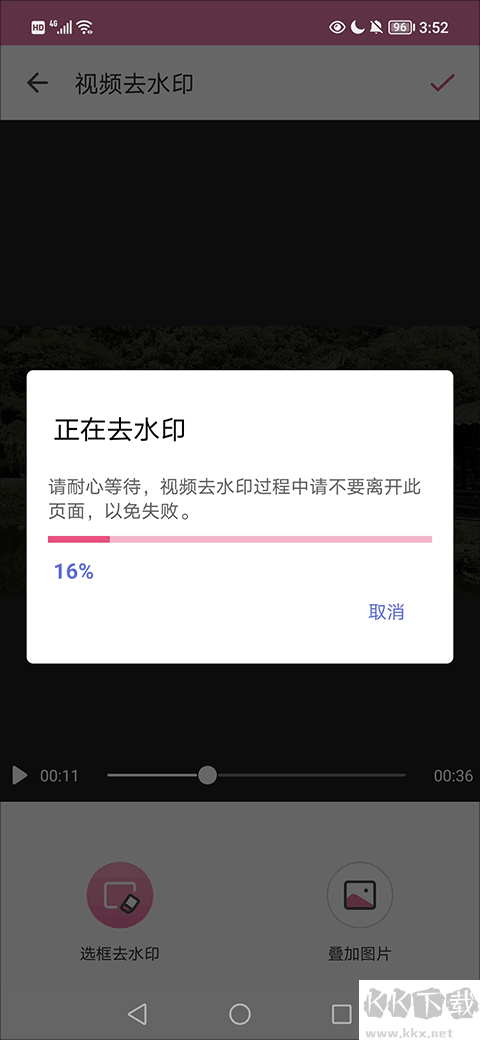 4、系統(tǒng)將自動(dòng)開(kāi)始去水印處理,請(qǐng)稍作等待,處理速度取決于視頻長(zhǎng)度與設(shè)備性能;