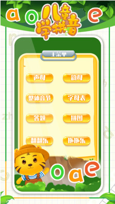 1、按照小學(xué)課本順序,學(xué)習(xí)單韻母和復(fù)韻母 a o e、ao iu等;每個(gè)字母包括字母發(fā)音和書寫、字母聯(lián)想記憶動(dòng)畫和順口溜、一到四聲韻母的發(fā)音及書寫、韻母對(duì)應(yīng)的字或次拼讀