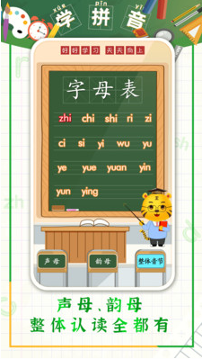 3、整體音節(jié)包括zhi chi shi等;內(nèi)容包括:整體音節(jié)發(fā)音書寫、字母聯(lián)想記憶動(dòng)畫和順口溜、字母關(guān)聯(lián)詞組拼讀、一到四聲整體音節(jié)的發(fā)音及書寫