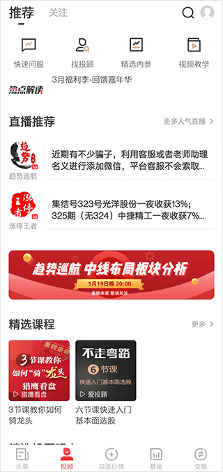 2、在投顧模塊這里可以找投顧、快速問股、看視頻教學(xué)等;