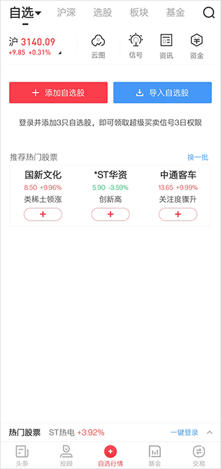 3、在行情模塊可以快速查看實(shí)時(shí)的行情,添加自選股;