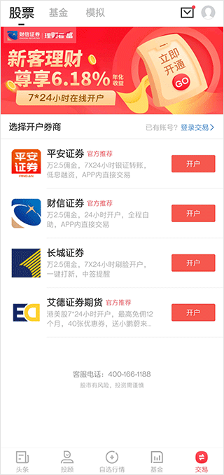5、在交易模塊可以進(jìn)行開戶,基金交易等等。