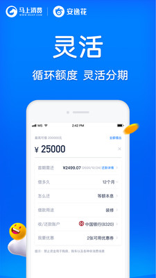 安逸花是一款循環(huán)額度的借錢貸款產(chǎn)品,用戶可以在額度范圍內(nèi)進行分期借錢貸款,在享受安全、專業(yè)、智能、便捷的分期借錢貸款同時,可自主提現(xiàn)支付,可享免息消費服務(wù)!