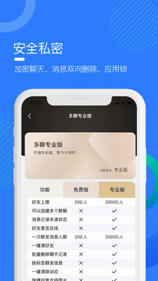多聊是一款安全私密的端到端加密聊天軟件,支持最高2萬人好友、群組支持最高1萬人進(jìn)群暢聊,擁有消息撤回、群禁言、群成員保護(hù)、好友雙向刪除、已讀、聊天記錄雙向刪除等30項(xiàng)特色功能!