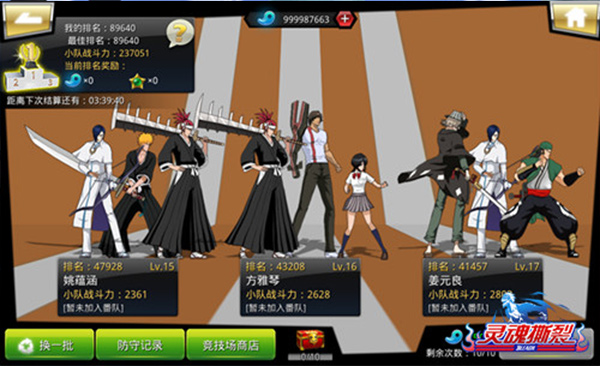 競(jìng)技場(chǎng)是一種策略PK玩法,在3V3的組隊(duì)?wèi)?zhàn)中,一支搭配合理的小隊(duì)往往能比三個(gè)強(qiáng)力死神的簡(jiǎn)單組合發(fā)揮更大的威力。建隊(duì)的關(guān)鍵在于思路明確,比如1號(hào)位傷害吸收,2號(hào)位輸出,3號(hào)位輔助控制這樣的安排,搭配“卍解修煉季”就能入手的市丸銀、劍八這樣的強(qiáng)力角色,就是一套合格的陣容了。