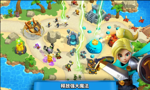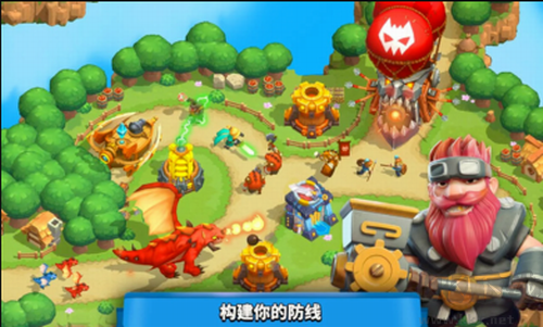 3、玩家將會(huì)與眾多英雄一起并肩作戰(zhàn),利用建造起來(lái)的一座座炮塔,成功的抵御魔族的入侵,守護(hù),是永恒的主題。