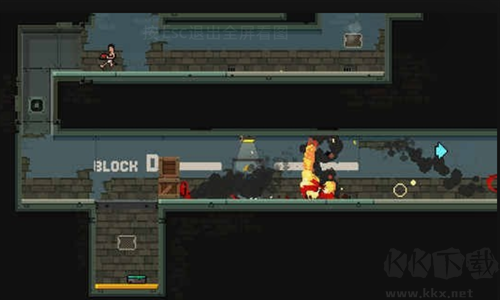 地上有紅色的點(diǎn),類似于延遲地雷,觸碰之后過幾秒會(huì)爆炸,然后頂壞鐵障礙跳上去,將鐵頂壞之后接著頂黃色的機(jī)關(guān),掉落炸彈從而讓右邊的墻壁崩塌,這樣就可以再次拿到綠色背包的武器。
