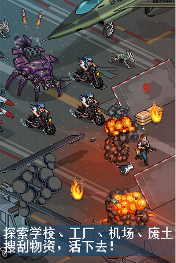 帶上你的武器,開(kāi)始闖蕩像素構(gòu)建的龐大廢土世界。四處都游蕩著喪失理智的怪物,它們?cè)谶@片土地上肆意攻擊和掠奪。而我們的目的很明確:橫掃一切擋路的怪物,在這廢土的世界,活下去。