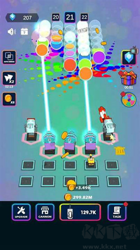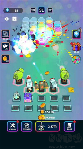 3. 有趣的放置塔防游戲,在您的武器庫(kù)中解鎖不同的大炮,以最佳時(shí)機(jī)和技能合并和升級(jí)大炮。