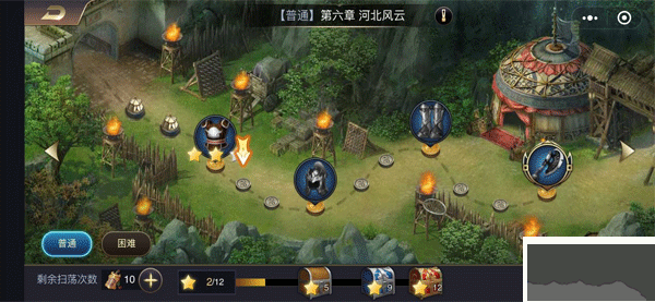 血戰(zhàn)群雄到不同的等級會開啟新關(guān)卡,新關(guān)卡第一次挑戰(zhàn)成功后,后面就可以直接掃蕩(不用再打一遍),需要消耗群雄令牌(可通過世界玩法黃巾入侵中獲?。?。