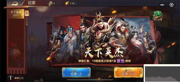 用來招募武將(碎片),10個碎片即可合成一個1星武將。(招募次數(shù)達到一定,還可以在界面右上角的累計招募里領(lǐng)取獎勵~)