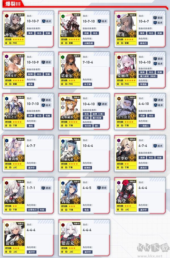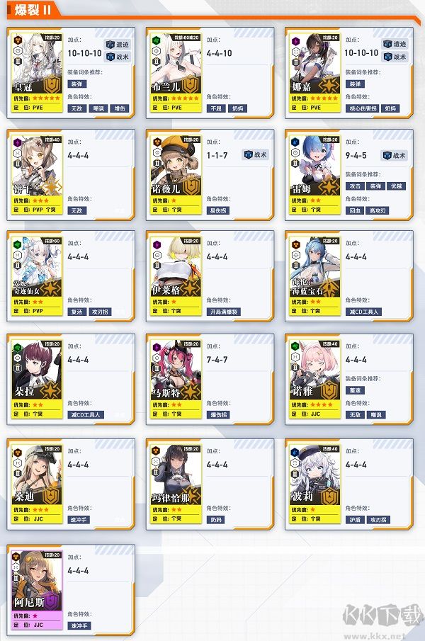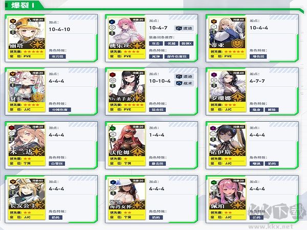3.格局變化:皇冠的崛起對原有的一、二號位角色帶來了不小的沖擊,尤其是白JK(蒂亞)。在1.5版本之前,黑白JK+麗塔+三號位×2是H難度下常見的越30%戰(zhàn)力組合,但皇冠的加入使得白JK不得不讓位。然而,在沒有皇冠的隊(duì)伍中,白JK依然保持著強(qiáng)勢地位。