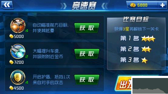 1.賽道上設(shè)置有各類(lèi)隨機(jī)道具,諸如飛彈、護(hù)盾、加速道具等。此類(lèi)道具的存在,使賽事充滿(mǎn)變數(shù)與刺激感。