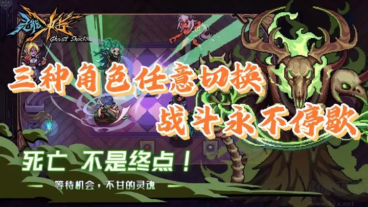 1、操作方式:戰(zhàn)斗開始時(shí)玩家控制一位擁有超凡力量的英雄,在被擊敗后將隨機(jī)變成怪物,而拿到最后一擊的怪物則會(huì)變成英雄,繼續(xù)戰(zhàn)斗。最終,玩家要挑戰(zhàn)三名幽靈共同控制的BOSS, 或者和兩名幽靈共同控制BOSS來應(yīng)對(duì)勇者的挑戰(zhàn)。