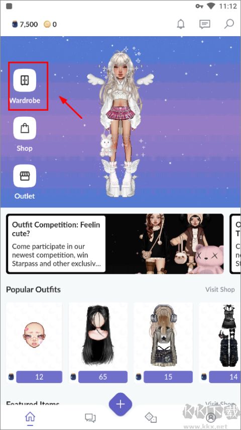 1、打開everskies手游最新版,進(jìn)入游戲后,點(diǎn)擊Wardrbe開始;
