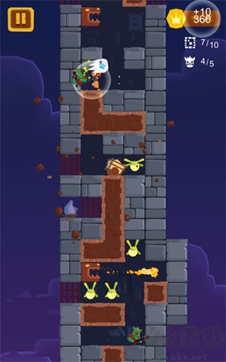 2、操作方式:向下滑動(dòng)手指,揮動(dòng)錘子攻擊 。土磚塊可敲碎,借此向下移動(dòng),石頭磚塊無法擊碎 。
