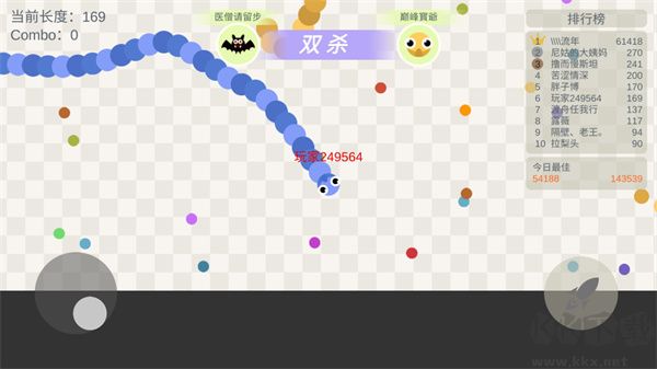 游戲中常見群蛇混戰(zhàn),可尾隨大蛇,待其戰(zhàn)死后迅速奪取散落的大豆豆。