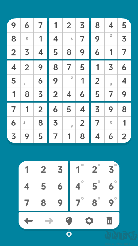 數(shù)獨(dú)清sodocool純凈版是款清新風(fēng)格的數(shù)獨(dú)益智手游,界面簡約直觀,操作邏輯兼顧不同習(xí)慣 —— 既可長按數(shù)字盤快速填選,也能通過單擊傳統(tǒng)按鍵逐格推理。游戲核心圍繞9x9盤面展開,需依據(jù)已知數(shù)字推導(dǎo)所有空格,確保每行、每列及每個3x3宮格內(nèi)數(shù)字1-9不重復(fù)。難度梯度清晰1至2星適合新手入門,3星以上對熟練玩家構(gòu)成挑戰(zhàn),5星難度更堪稱高手試金石。內(nèi)置標(biāo)記、實時存檔、高亮提示等工具輔助解題,無論新手進(jìn)階還是高手沖關(guān)都能獲得流暢體驗,閑暇時沉浸于數(shù)字邏輯的樂趣,感受腦力推演的獨(dú)特魅力。
