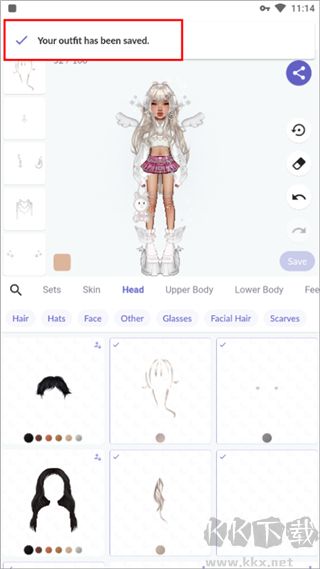 3、等待系統(tǒng)處理,上方顯示 “Your outfit has been saved” 提示,即保存成功。