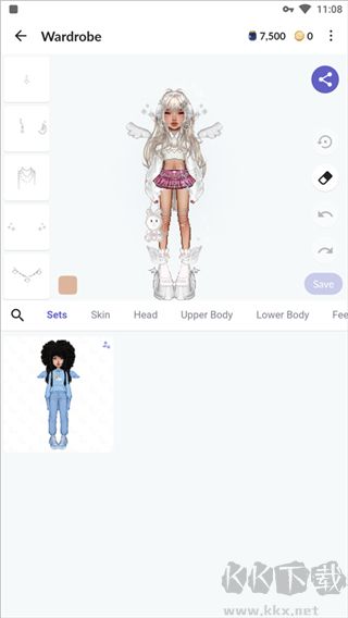 2、自由搭配服裝、配飾完成角色創(chuàng)作,點擊右側(cè) “Save” 按鈕;