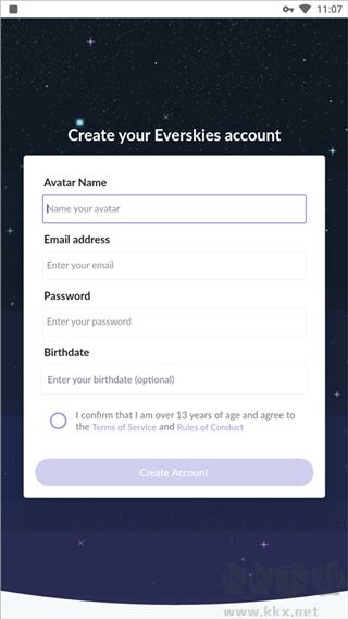 3、填寫用戶昵稱、賬號郵箱、密碼及生日信息,同意用戶協(xié)議后提交;