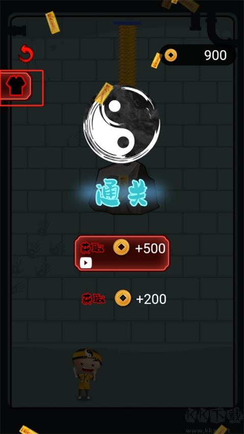 9、第九關(guān):讓干支表牛骨靠近銅幣,利用吸附力帶動石頭解救小道士。