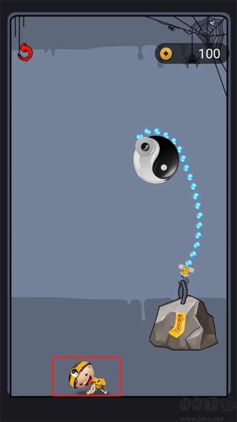 5、第五關(guān):拉動抓鉤抓住下方開關(guān)按鈕,解救被困的小道士。