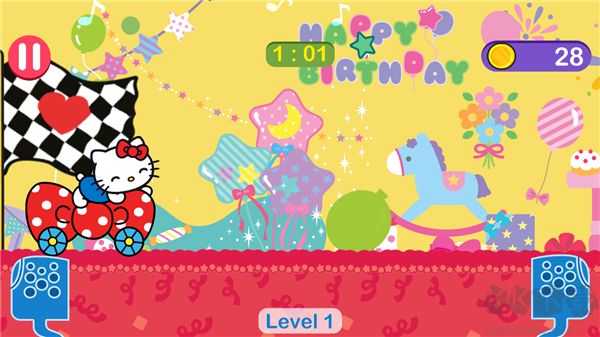 6、操縱凱蒂貓駕駛車輛闖關(guān),收集路上金幣直至抵達終點。