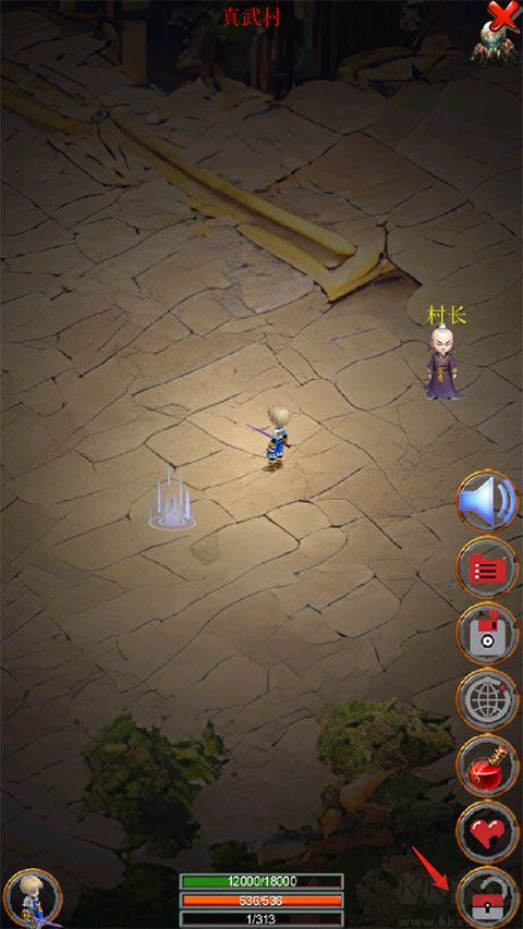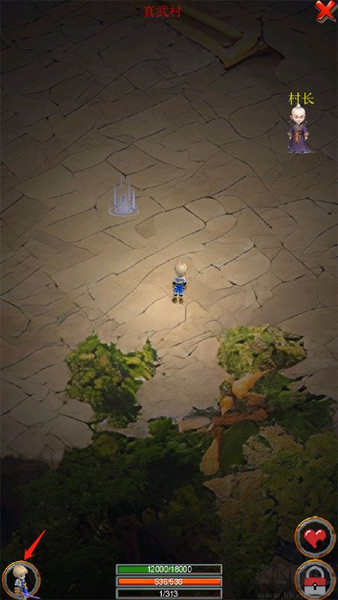 2、移動(dòng)人物往上走、來到村長(zhǎng)身邊,觸發(fā)劇情對(duì)話。?