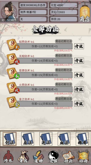 2、您能修煉提升功法境界,增強(qiáng)角色戰(zhàn)力。