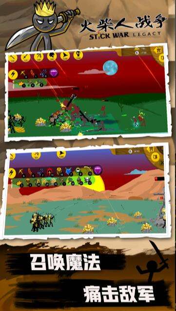 3、游戲中玩家將親臨激烈刺激的戰(zhàn)場,指揮你的火柴人勇士進行作戰(zhàn),而且游戲中有著各種火柴人士兵可供訓練