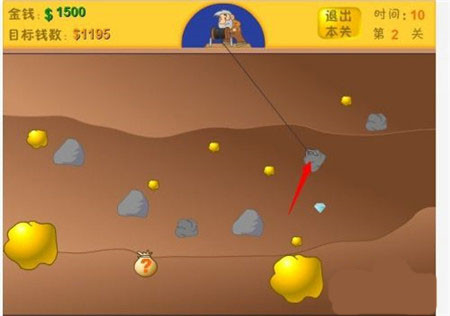 我們打開游戲,點(diǎn)擊“開始游戲”即可。每一關(guān)開始之前都會(huì)給你一個(gè)目標(biāo),達(dá)到這個(gè)目標(biāo)就可以過關(guān)。 怎么樣選擇下面的東西,很關(guān)鍵,關(guān)系到你能不能過關(guān)。我們在前面的關(guān)卡中因?yàn)闀r(shí)間比較充足可以選擇大一點(diǎn)的金塊。 第一關(guān)給的目標(biāo)一般都比較少,所以很好過關(guān)的。以為金錢數(shù)是積累的。這一關(guān)你獲得的多,下一關(guān)就比較容易。 在土地下面的東西都可以抓得到。隨著關(guān)卡的往后。會(huì)出現(xiàn)鉆石等貴重的物品。當(dāng)然石頭也是可以抓住。不過是浪費(fèi)時(shí)間 也有打著問號的錢袋。那里面不一定有什么東西,不過好在比較快。抓一下也不錯(cuò)。 過每一關(guān)的時(shí)候都要注意它給的時(shí)間限定。一旦時(shí)間到了就完了。 過關(guān)之后,會(huì)給你一次購買物品的機(jī)會(huì),耗費(fèi)你的金錢。每一種物品你點(diǎn)擊之后會(huì)有相應(yīng)的功能介紹。 每過一關(guān),過關(guān)需要的金錢數(shù)就會(huì)增長很多,你要盡量減少失誤才能越走越遠(yuǎn)。