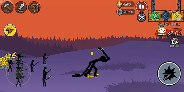 1、控制你的軍隊(duì)組成編隊(duì)或指揮單個(gè)單位,你擁有每個(gè)火柴人的控制權(quán)。