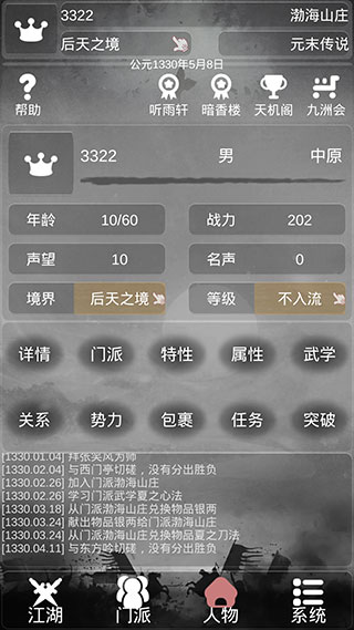 3、體驗江湖的熱鬧非凡,豐富多樣的情節(jié)發(fā)展,伴隨著自身情況了打開不同類型的人生,你能變成一代大俠。