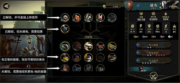 已解鎖區(qū)域 - 不帶小喇叭,是你可以招募的,角色死亡后,你喜歡哪個就招募哪個。招募到的是1級的全新角色。