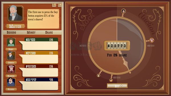 除了單局游戲,玩家還可以進行更有挑戰(zhàn)的競賽模式。在競賽模式中,玩家將與另外三位創(chuàng)業(yè)者競爭。帶著相同的創(chuàng)業(yè)資金,拍賣資源最豐厚的土地,謀取更高的利潤,購買、升級自己的科技,抬高身價,并最終成為新一任小鎮(zhèn)鎮(zhèn)長。該模式下,單局的收入會影響整局記錄,每次開采的利潤或虧損,會統(tǒng)一計算。土地拍賣存在運氣成分,但也與資源分布有關(guān):富饒的資源通常聚集在一起。與競爭對手競拍,搶下最富饒的土地,以獲取更多資源。拍賣老鎮(zhèn)長的股份,是取得最終勝利的途徑。但獲取科技,才能在之后的開采中取得優(yōu)勢。賄賂銀行和石油公司,也可以取得交易上的優(yōu)勢。