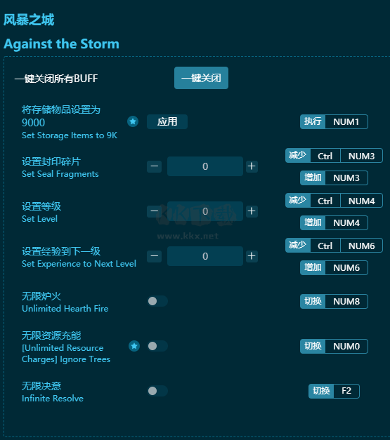 風暴之城二十項修改器鍵位功能