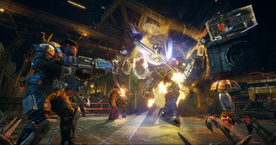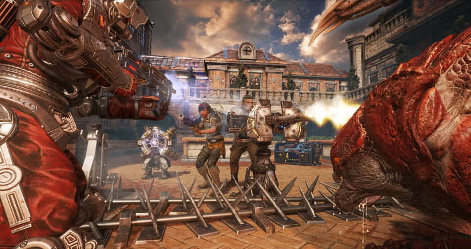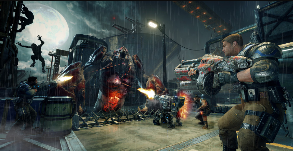 《戰(zhàn)爭機器4》是系列的第五部作品,設定在《戰(zhàn)爭機器3》之后的25年。人類正在緩慢的恢復和重建之中,而Sera行星的氣候由于Imulsion武器的使用毀掉了星球上所有的化石燃料。Imulsion炸彈和殘酷的戰(zhàn)局破壞了星球的環(huán)境,時常會刮起致命的風暴,它被描述為龍卷分和颶風的集合體,人們稱之為“耀斑風暴”。在這一片荒涼破敗中人類瀕臨滅絕,在城市的廢墟中尋找庇護。但是類獸人蜂群(Swarm)的出現(xiàn)開始威脅到人類。JD Fenix以及他的兩位好友拿起槍,踏入了戰(zhàn)場。
