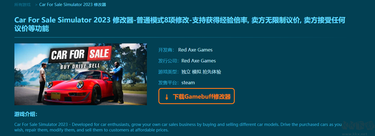 Car For Sale Simulator2023八項修改器pc完整版普通模式功能介紹(支持8項修改,不支持聯(lián)網(wǎng)模式)