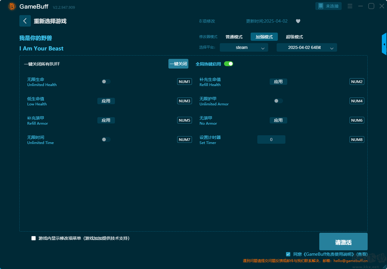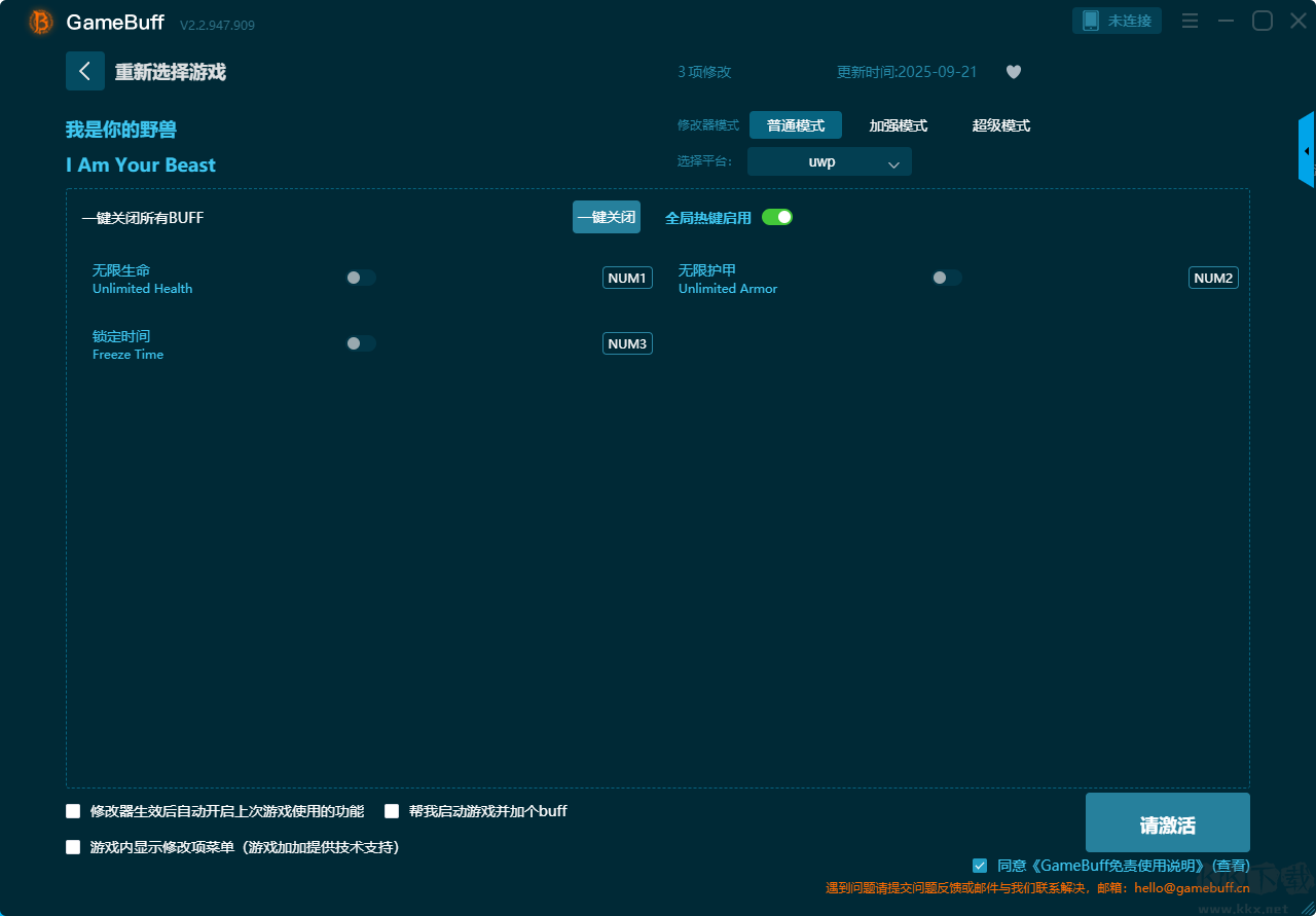 我是你的野獸三項修改器pc中文版是一款實用有趣的游戲輔助修改工具。玩家可以在這款工具中的三個模式中選擇一個開啟無限生命、低生命值、補充裝甲、無限時間、補充生命值、無限護甲、無裝甲、設置計時器等多項強大功能,支持uwp、steam、ms-store三大平臺使用。需要的小伙伴快來KK下載站下載使用吧。