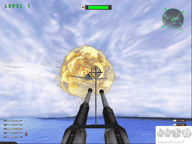 2、敵人類型多樣(登陸艇、裝甲車、戰(zhàn)斗機(jī)、直升機(jī)、傘兵等),不同敵人有不同弱點(diǎn),需針對性攻擊。